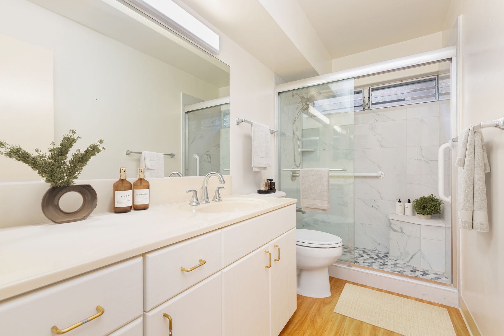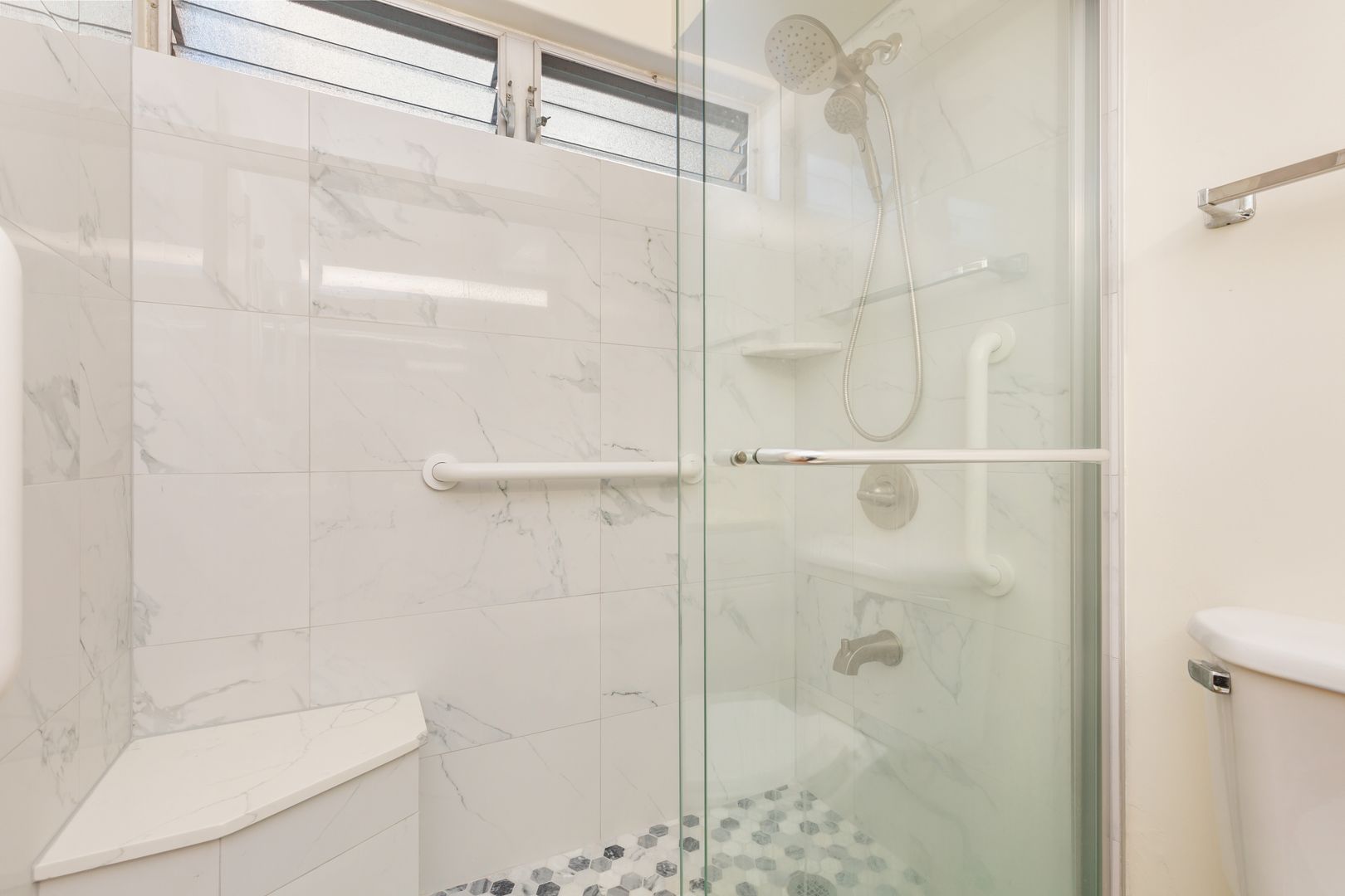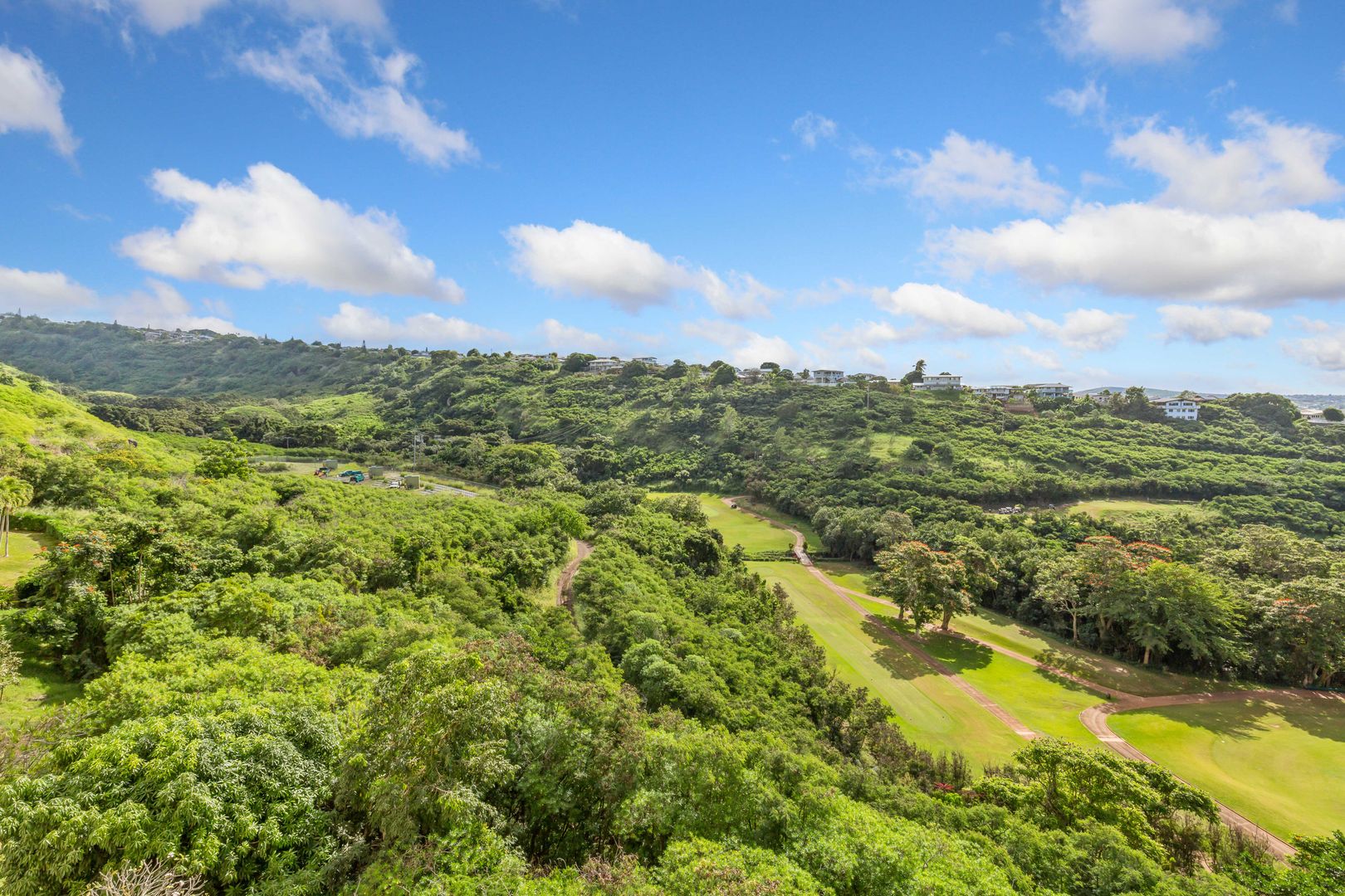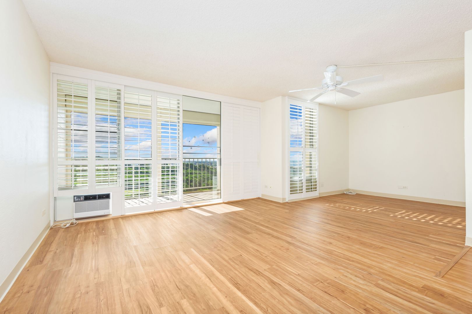 Meticulously maintained end unit with many upgrades. Largest of the single-level 2-bedroom, 2-bath unit with includes a bonus area. Situated on the 5th floor, actually 8 floors up, it offers stunning views overlooking the golf course to Pearl Harbor to the ocean. Turn toward the mountains for sunrise colors and afternoon rainbows. The lanai accommodates a table and chairs to enjoy the beauty. The remodeled kitchen is open to the view, bringing in natural light. Both bathrooms are fully remodeled and feature beautiful, oversized shower stalls. The primary bedroom boasts two large closets, a private bath, and windows on either side for a cooling cross breeze. The ample second bedroom also enjoys fantastic views. Includes full-sized washer/dryer, one assigned covered parking stall, Friedrich a/c units (nearly new) in the living room and primary bedroom. Rent includes cable, internet, hot water, sewer, and trash. The gated community offers endless amenities: heated pool, whirlpool, tennis, recreation room with pool and ping pong, pickleball, BBQs, exercise rooms, saunas, EV charging, putting green, guest parking, and more! Truly resort style living!